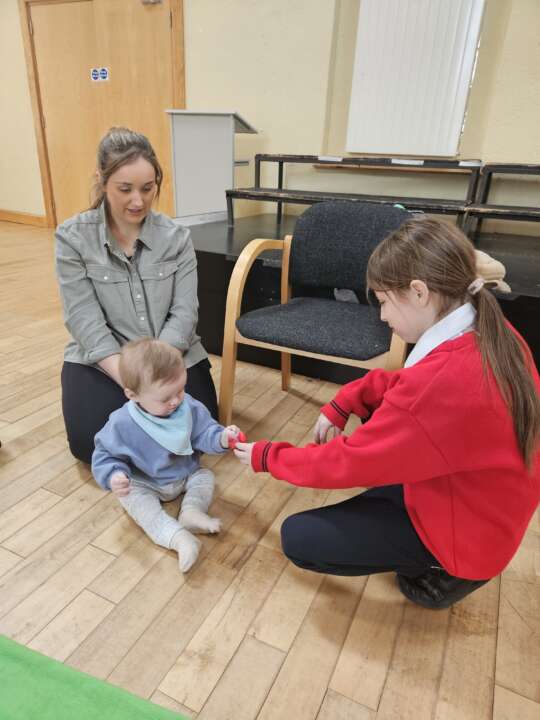There are three helpers chosen for each visit, and for our first visit we had Emma, Abi and Jayce. They were given the opportunity to choose a suitable toy to show Donnacha in order for us to see his reaction.